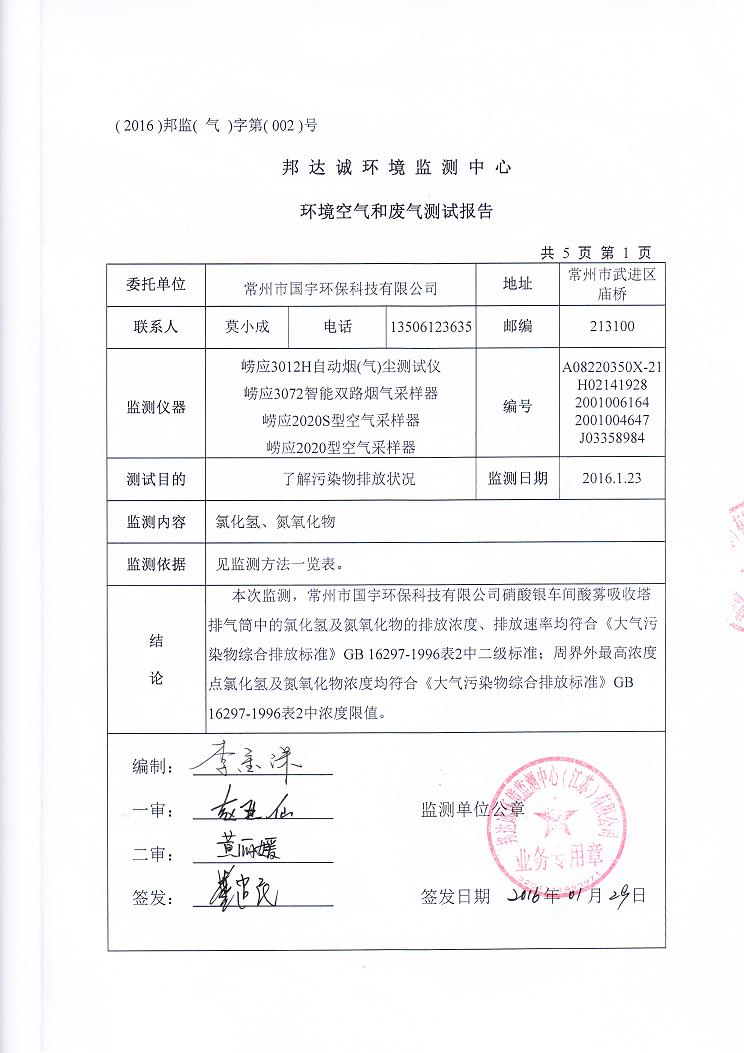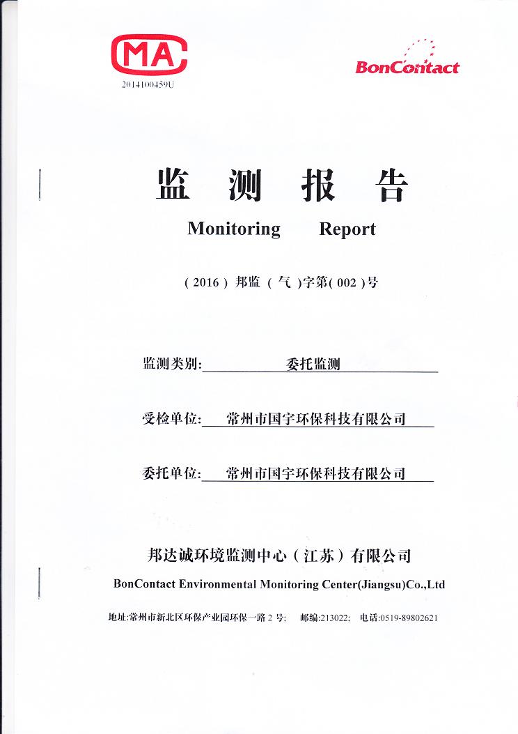 2016年常州市國宇環(huán)??萍加邢薰練獗O(jiān)測報(bào)告網(wǎng)上公示